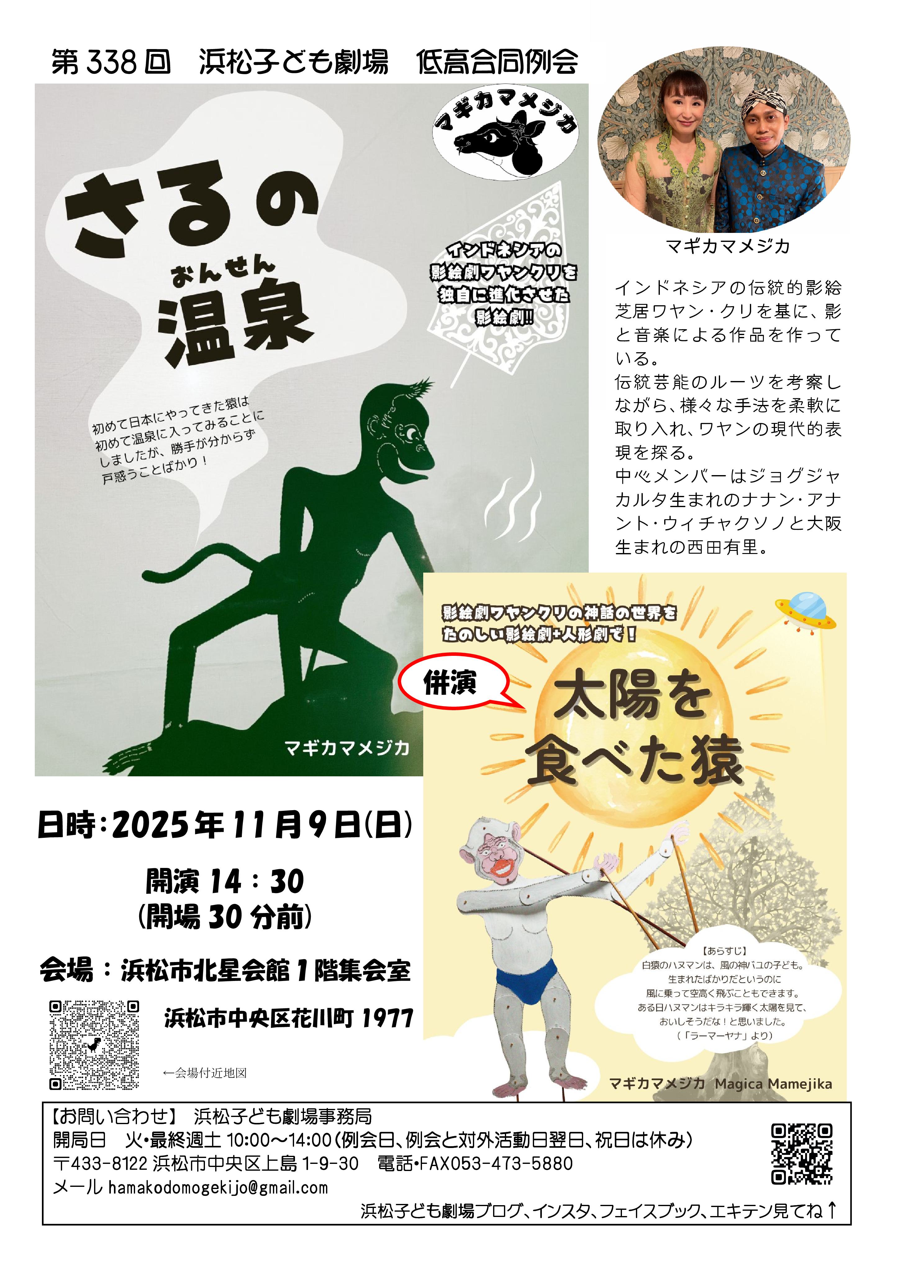 【影絵人形劇鑑賞会のお知らせ】インドネシア伝統影絵劇(ワヤン・クリ)「さるの温泉....